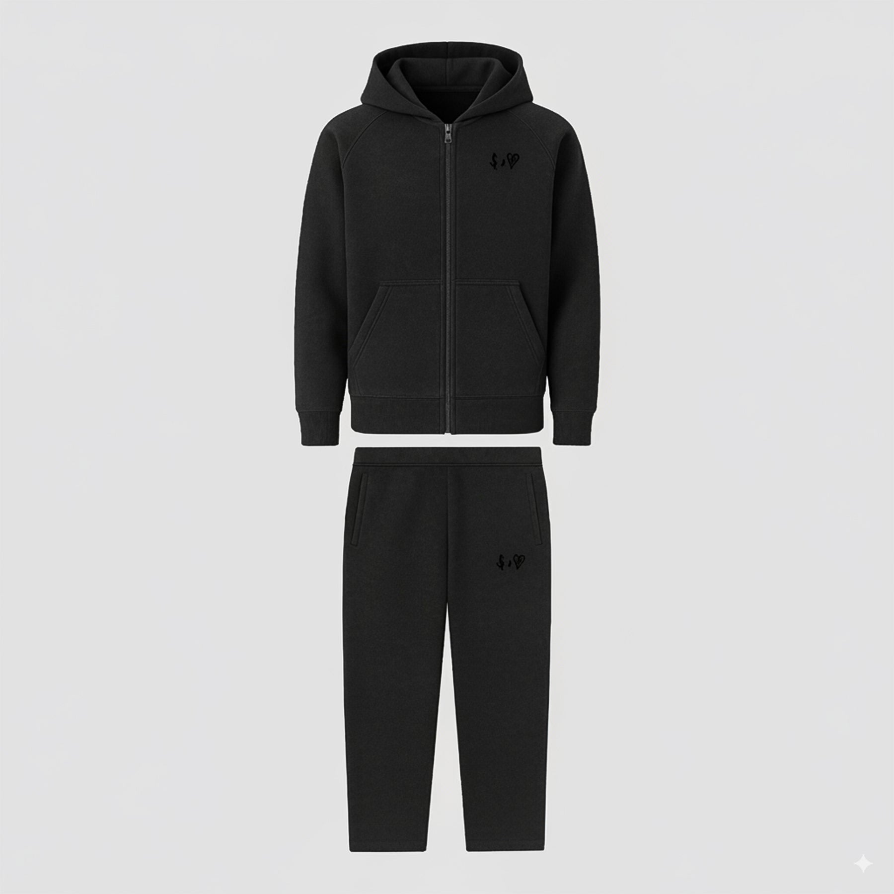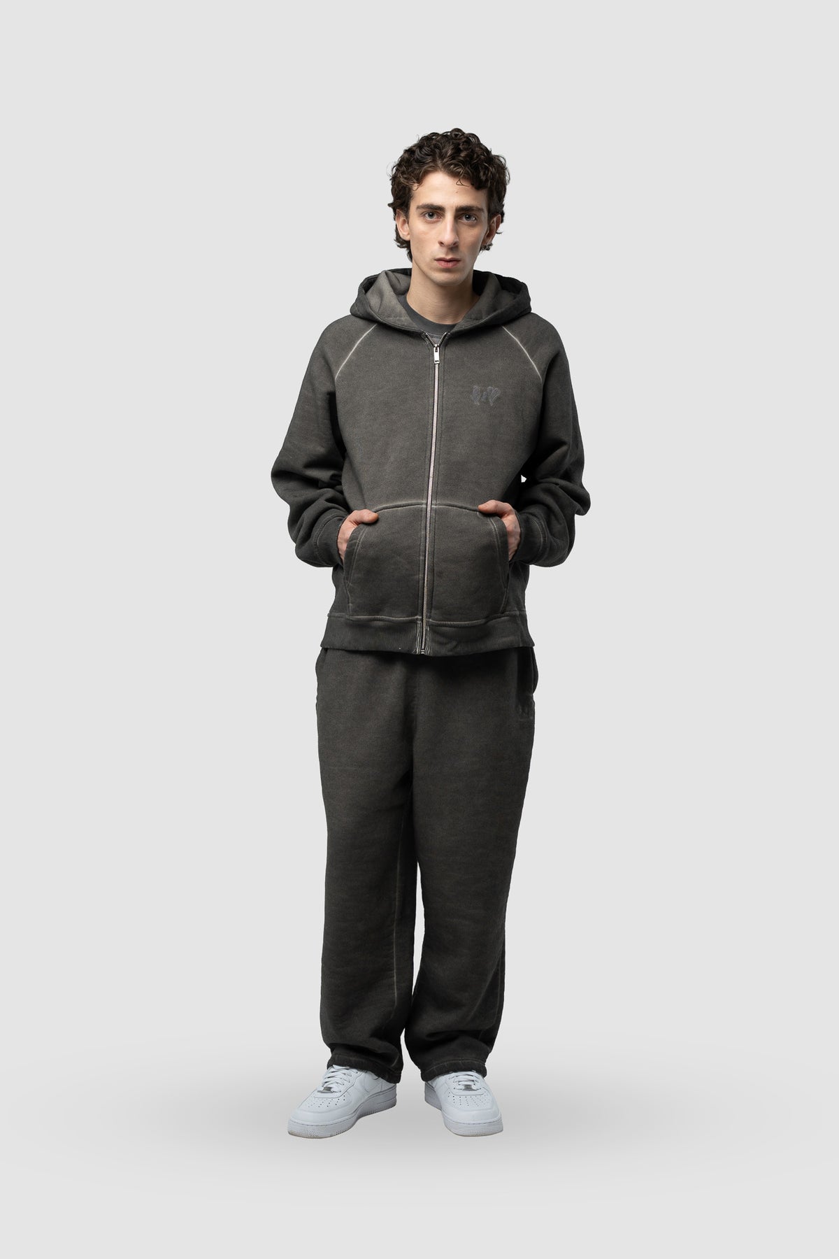 BASIC WASHED BLACK TRACKSUIT WITH ZIP-HOODIE