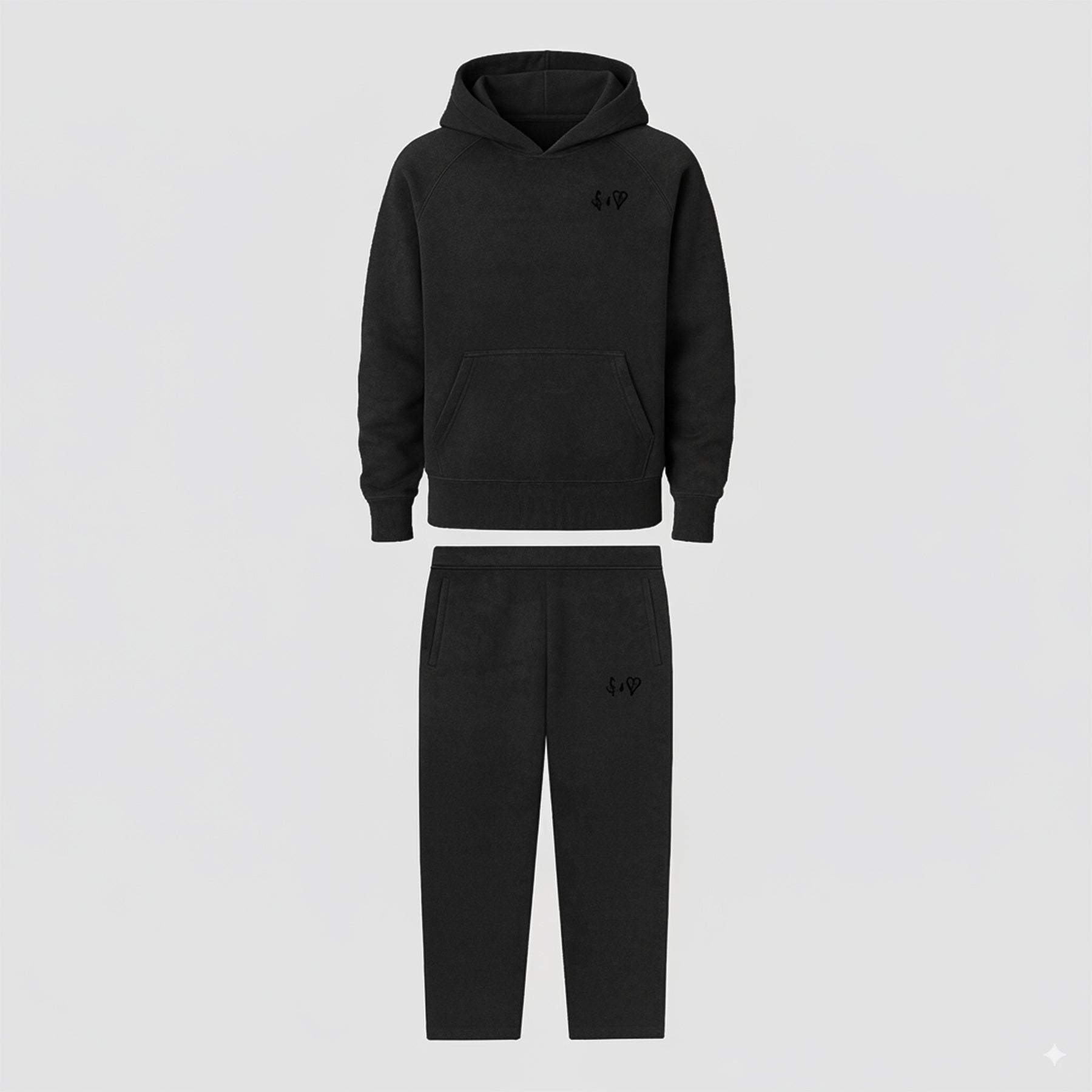 BASIC WASHED BLACK TRACKSUIT WITH HOODIE
